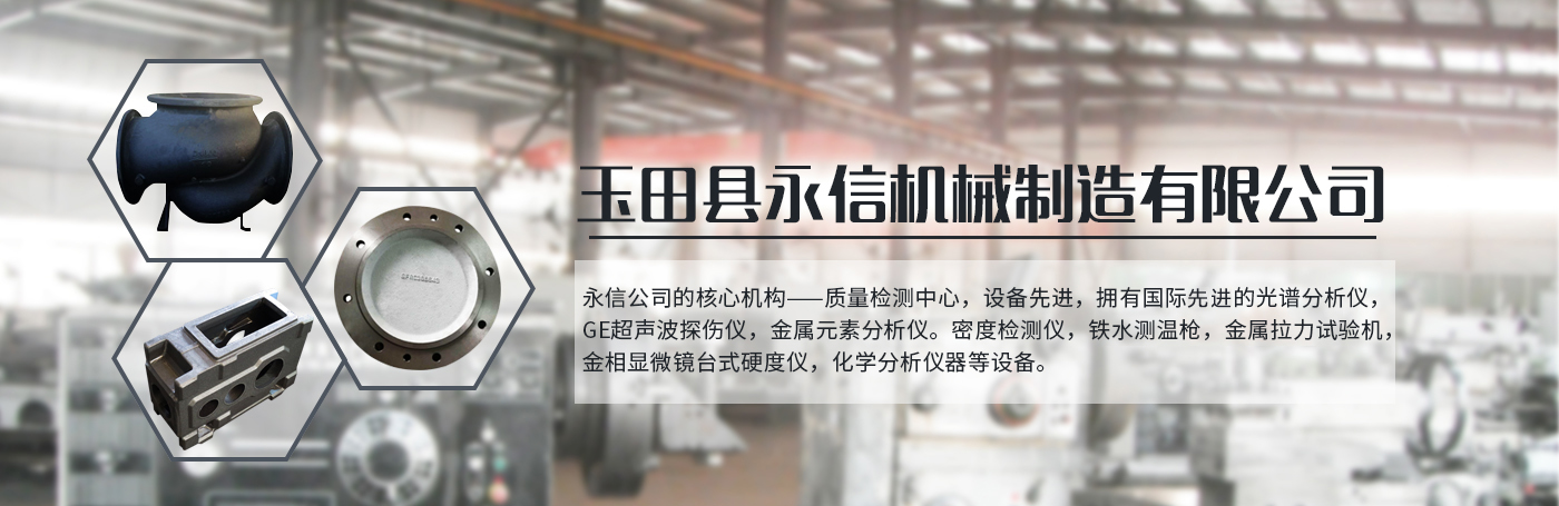 玉田縣永信機械制造有限公司總公司成立于2009年,注冊資金5000萬元人民幣,占地35畝,具備年產2萬噸減速機、閥體、電機座鑄件等的生產能力,是國家工信部批準的鑄造準入企業(yè)。公司是從事工程機械鑄件,機床鑄件生產和銷售的泵閥鑄件廠家,配備全自動生產設備和環(huán)保設施,加快綠色發(fā)展。公司以生產灰鑄鐵、球墨鑄鐵鑄、耐磨鑄鐵件、工程機械鑄件、機床鑄件為主。鑄造車間擁有自動和手工兩條造型生產線及液壓控制的覆膜砂制芯系統。鑄造過程含造型、電爐熔煉澆鑄、抖箱、噴丸拋光、打磨等工序。樹脂砂、覆膜砂、粘土砂造型生產工藝成熟穩(wěn)固,年產量超過2萬噸,其中,樹脂砂自動造型生產線,以批量大、標準高、誤差小的特點深得用戶信賴。樹脂砂造型生產模式以滿足異型和私人定制為特色,成為企業(yè)成長的重要組成部分。機械加工車間擁有3套加工中心、15臺數控車床及其它加工設備。永信公司的核心機構——質量檢測中心,擁有光譜分析儀、GE超聲波探傷儀,金屬元素分析儀,密度測試儀,鐵水測溫槍、金屬拉力實驗機、金相顯微鏡、臺式硬度儀